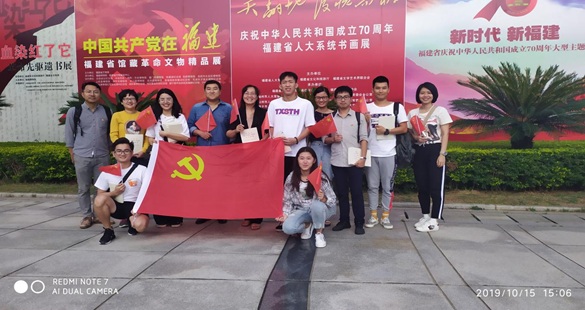 为庆祝中华人民共和国成立70周年,2019年10月15日beat365中文官方网站学生第一、第二党支部在福建博物馆开展参观“新时代新福建——福建省庆祝中华人民共和国成立70周年大型主题展”党日活动,主题展呈现出一幅新时代新福建建设新征程中持续奋斗、开拓前行的壮美画卷,党员们为中华人民共和国成立70年来福建经济社会发展的巨大成就所震撼,纷纷流连忘返。