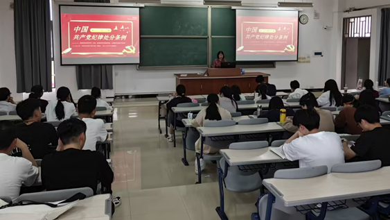 为加强党支部纪律建设,进一步强化党员纪律意识,2024年5月7日,学生第三党支部邀请林娟副院长以“党纪学习教育”为主题为同学们讲授专题党课,现场详细解读《中国共产党纪律处分条例》。参加本次学习的学生党员11人,积极分子64人,共计75人。