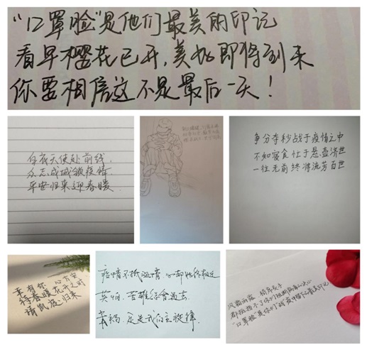 近日,beat365中文官方网站向日葵心理健康服务团举办“三行情书致敬抗疫英雄”作品征集展。活动期间广泛宣传,积极动员,踊跃投稿,为战“疫”贡献着自己的一份力量。本次征集共收到四十多份作品,活动中以凝练精致的三行话语向那些在与疫情抗争的英雄们表达自己的感谢、关心、鼓励与期盼。情书虽简但意味深长,包含了同学们丝丝入扣的真挚情感,让奋战一线的白衣天使、任劳任怨的执法警察以及与病魔对抗的勇敢患者们感受到我们的爱意、信心与希望,同他们一起披荆斩棘,共赴春光。充分展现信工学子面对时代挑战,勇担时代责任。