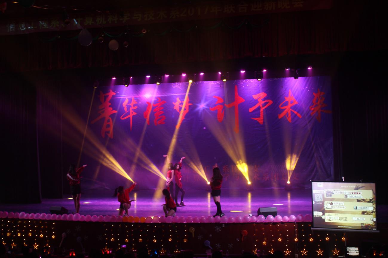 为迎接2017级新生的到来,展现我系学子风采,2017年12月25日,由信息工程系以及计算机科学与技术系联合举办的“菁华信梦,计予未来”迎新晚会在beat365中文官方网站活动中心举行。出席本次活动的嘉宾有信息工程系党总支书记王志刚、团总支书记林志杰、系主任林勇,计算机科学与技术系党总支书记林强、团总支书记苏姜燕、系主任田玉山。