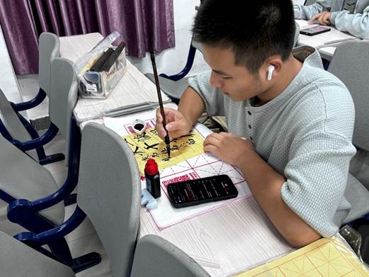 为确保活动的顺利推进,信工读书社提前统筹,统一配备了专用书法纸、笔墨及软笔套装等工具。各小组学生干部统一领取并分发材料,社员可依据个人书写习惯选择参赛类别,以《习近平谈治国理政》第五卷相关内容为书写范本,在规定时间内完成300字的书法作品并提交。活动由此构建起从“内容提供、工具领用到作品提交、评选反馈”的完整闭环,实现了各环节无缝衔接、高效推进。